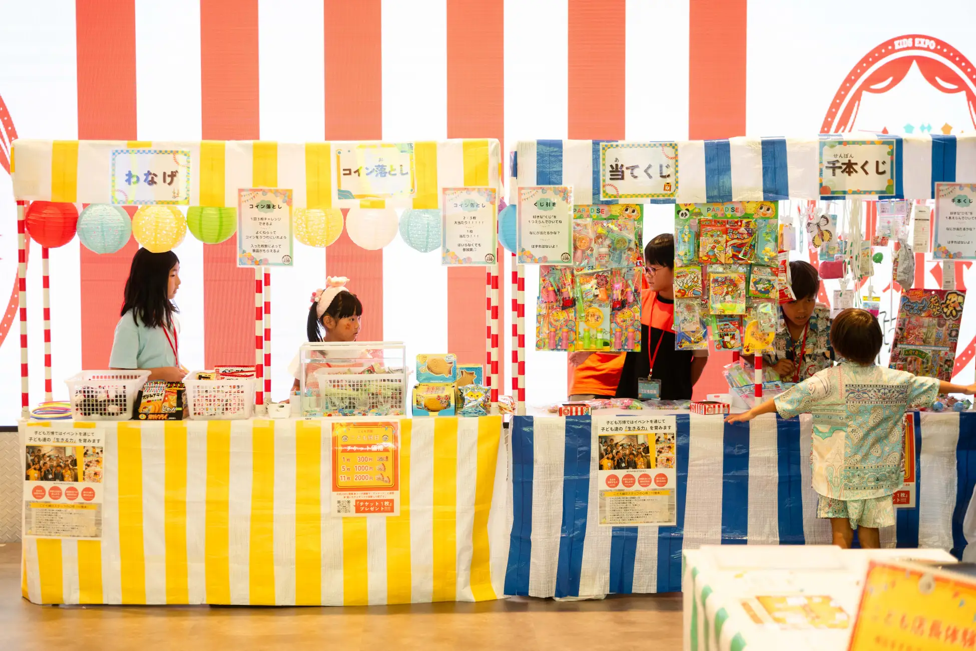 子どもたちに「夢を見つけるきっかけ」を提供する体験型イベント「こども万博 mini」を同時開催します。子どもたちが店長になって接客やサービス提供を行う「こども縁日」では、射的やお菓子すくい、千本くじなど8種類の出店を予定しています。